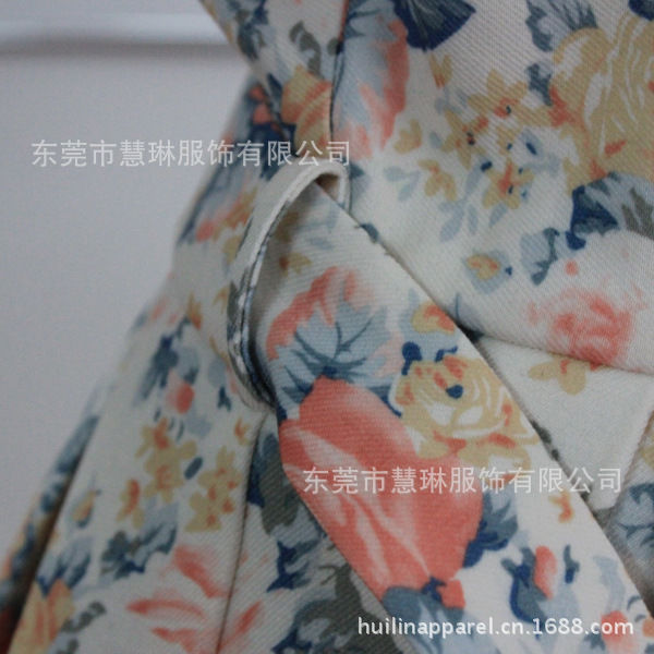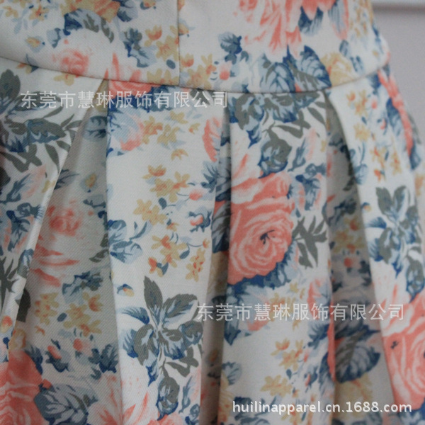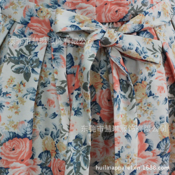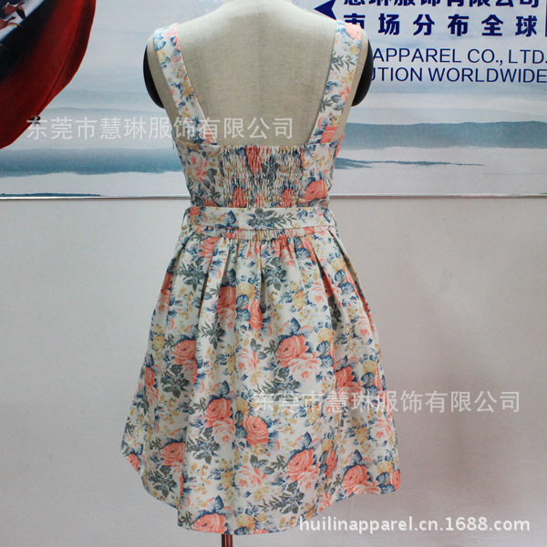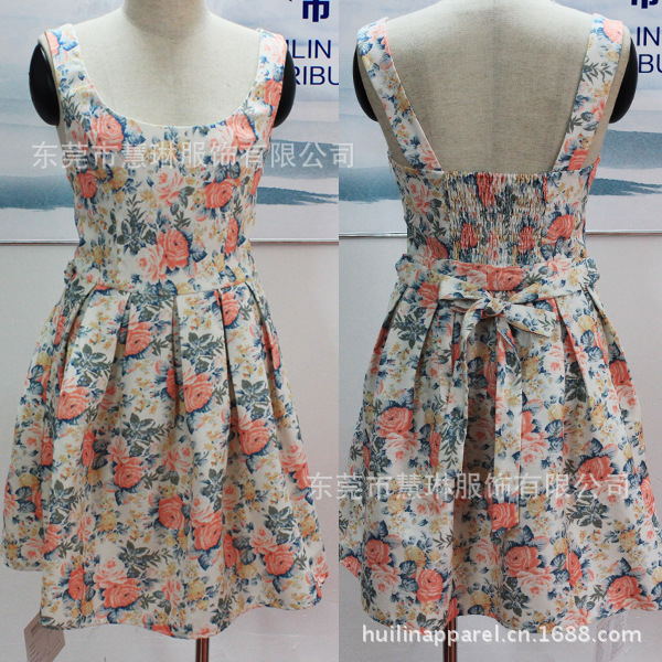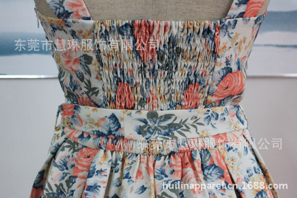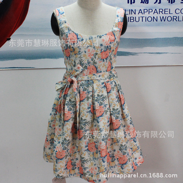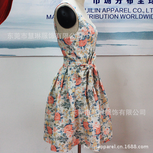 韓版小禮服 純棉斜紋印花背心裙緊身連衣裙 有腰帶拉鏈