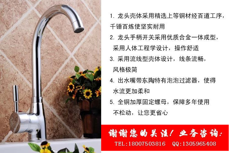 【精銅主體】:龍頭主體選用優質銅錠,采用國際的重力澆鑄工藝,經精密機械加工制造,渾然天成,堅固耐用。